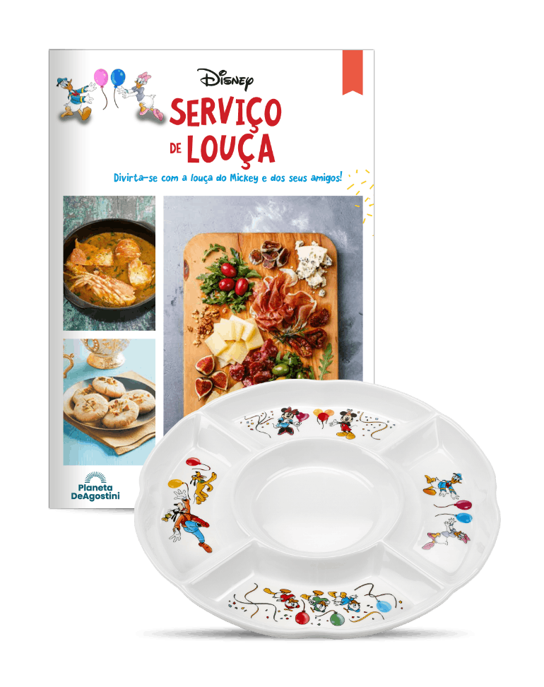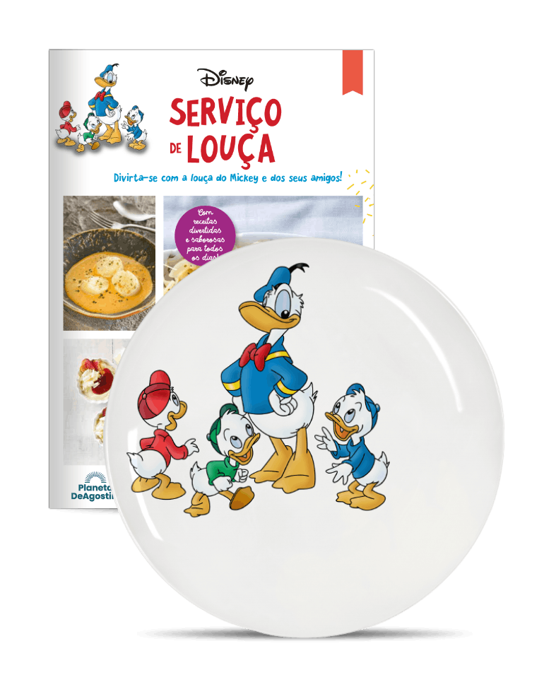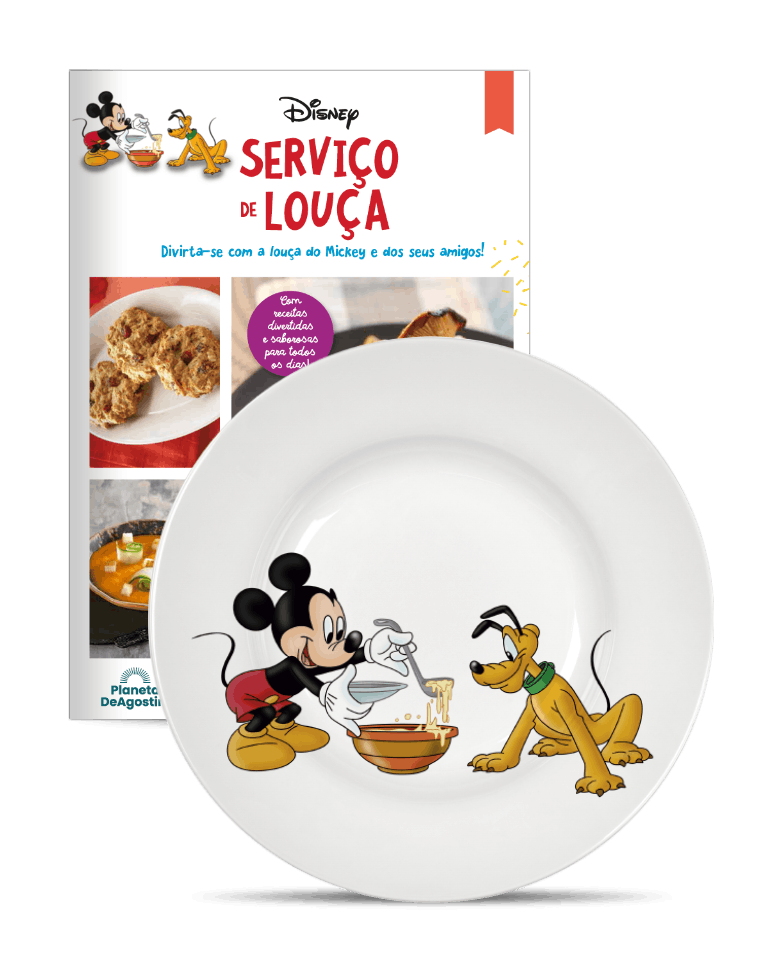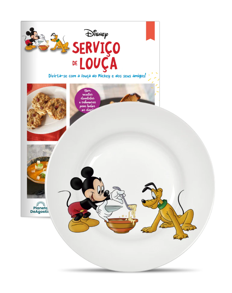 A Planeta DeAgostini oferece-lhe um divertido e exclusivo serviço de louça branca decorada com as personagens mais emblemáticas e icónicas da Disney: Mickey, Minnie, Donald, Margarida, Pluto, Pateta, Huguinho, Zezinho e Luisinho.