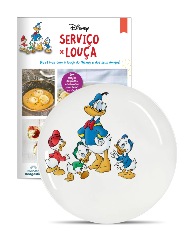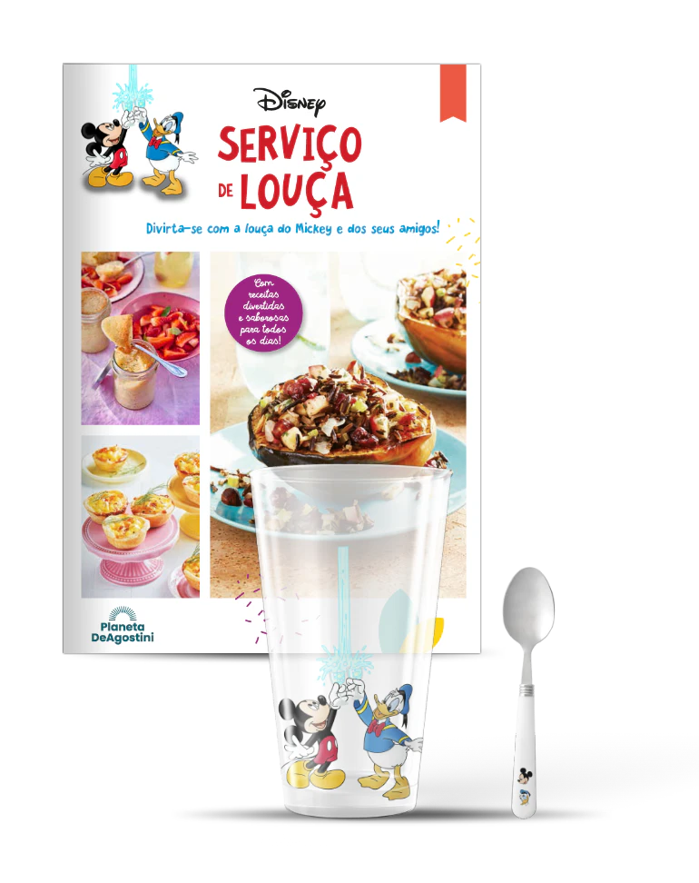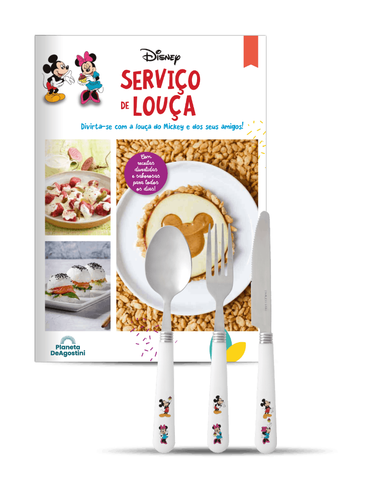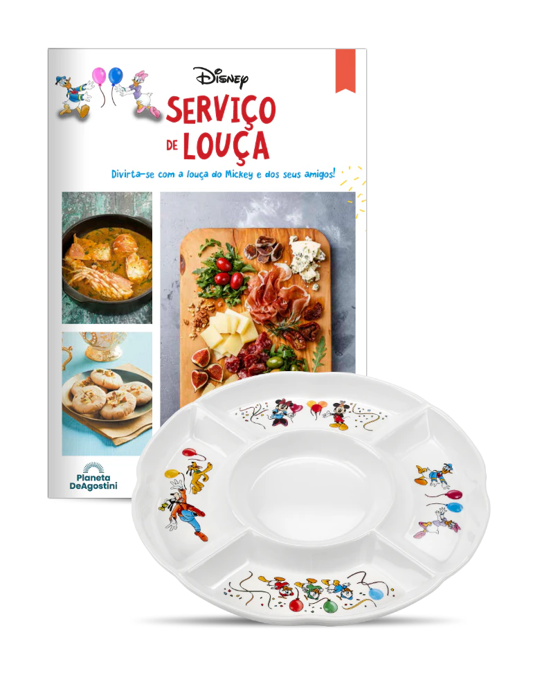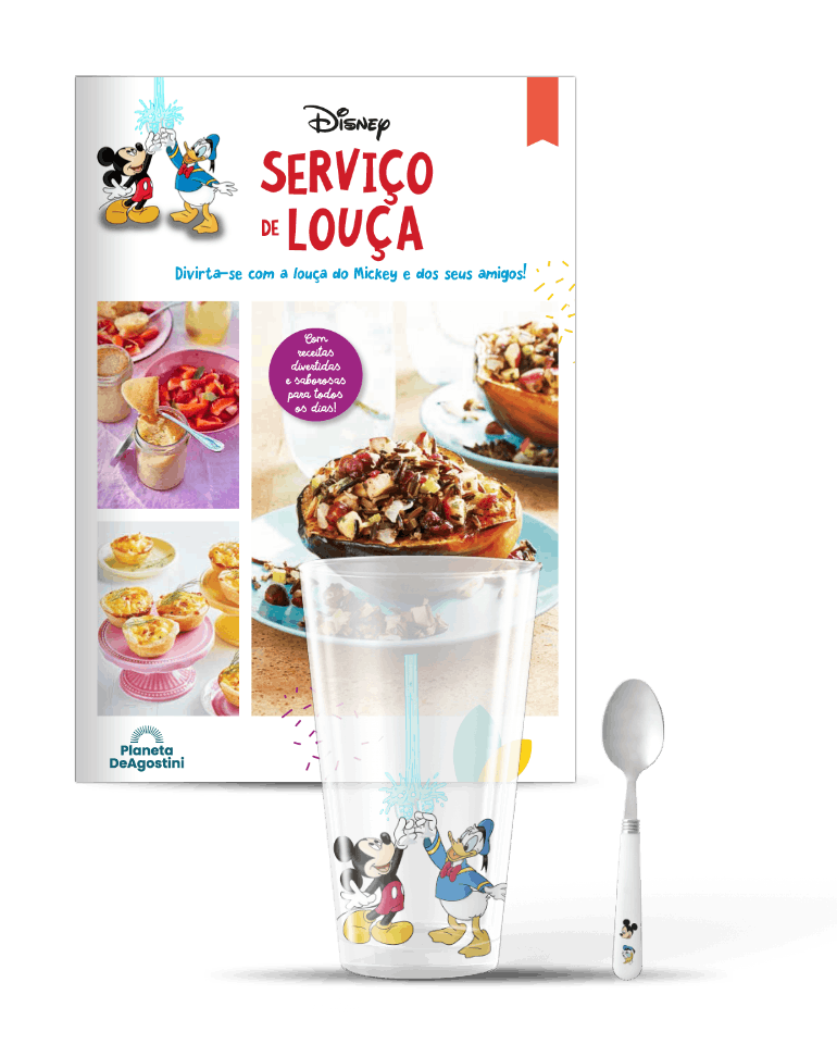 A Planeta DeAgostini oferece-lhe um divertido e exclusivo serviço de louça branca decorada com as personagens mais emblemáticas e icónicas da Disney: Mickey, Minnie, Donald, Margarida, Pluto, Pateta, Huguinho, Zezinho e Luisinho.