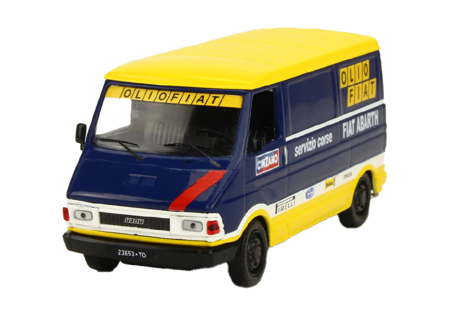 Miniatura da carrinha de assistência Fiat 242E integrada na equipa Olio Fiat em 1976 e 1977 para os veículos Fiat 124 Abarth e Fiat 131 Abarth.