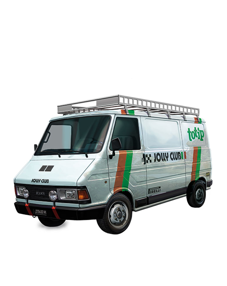Ao falar de grandes furgões na década de 1980, não podia esquecer-se o Fiat 242, primo-irmão do Citroën C35. Tão robusto como volumoso, tornou-se no veículo indispensável para todas as equipas italianas da época.