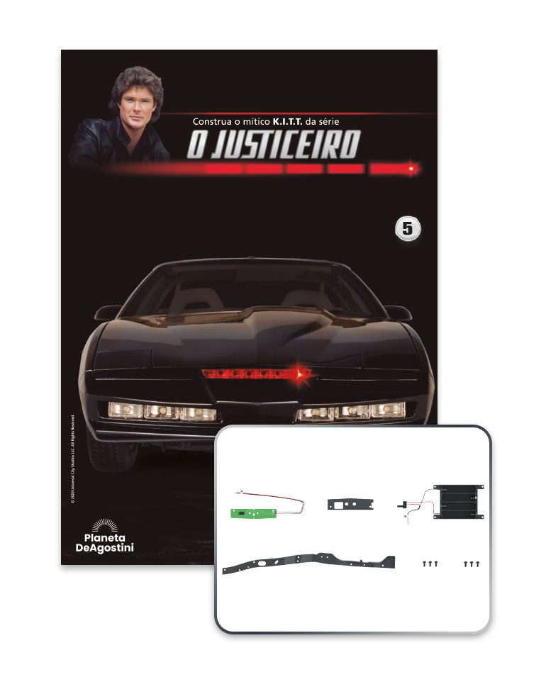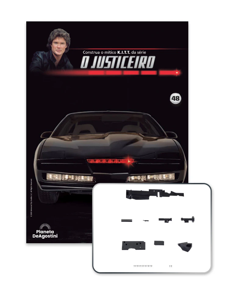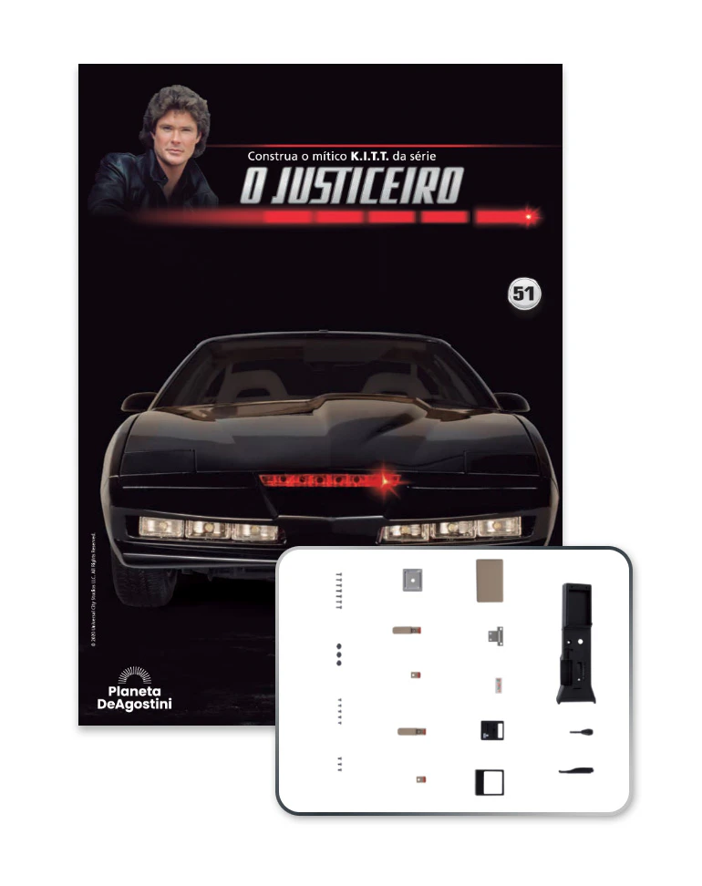 Divirta-se construindo passo a passo esta réplica perfeita do fabuloso K.I.T.T. da inesquecível série O Justiceiro.