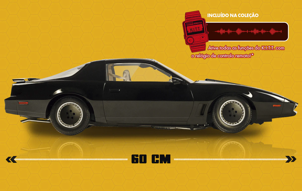 Realize o seu sonho e exponha o seu K.I.T.T. (escala 1/8), uma joia nostálgica que será valorizada tanto pelos amantes das séries dos anos oitenta, como pelos fãs do motor e do modelismo.
