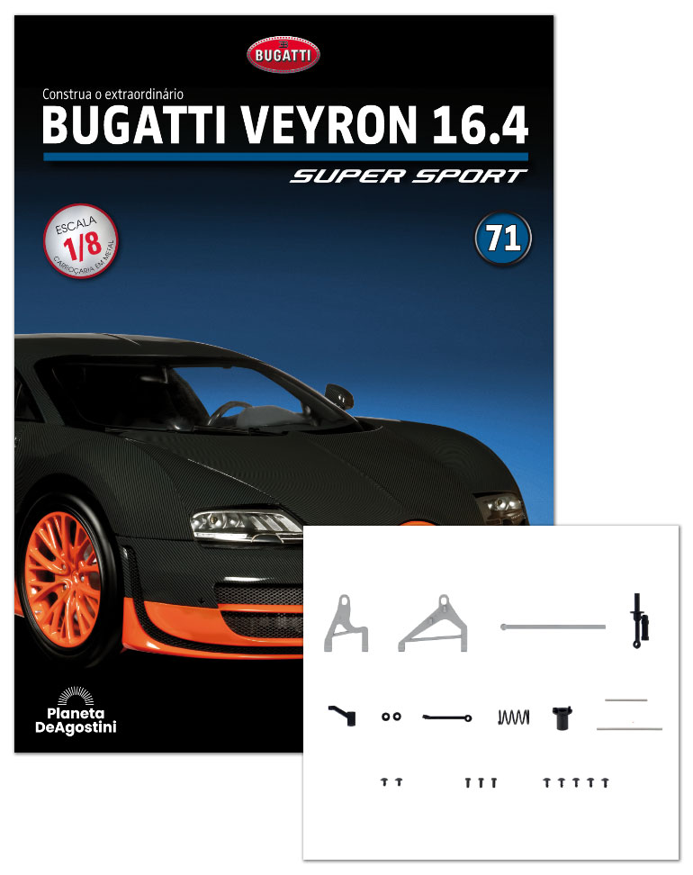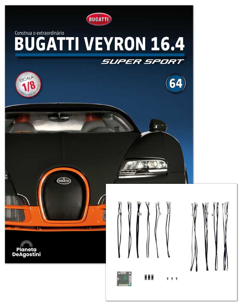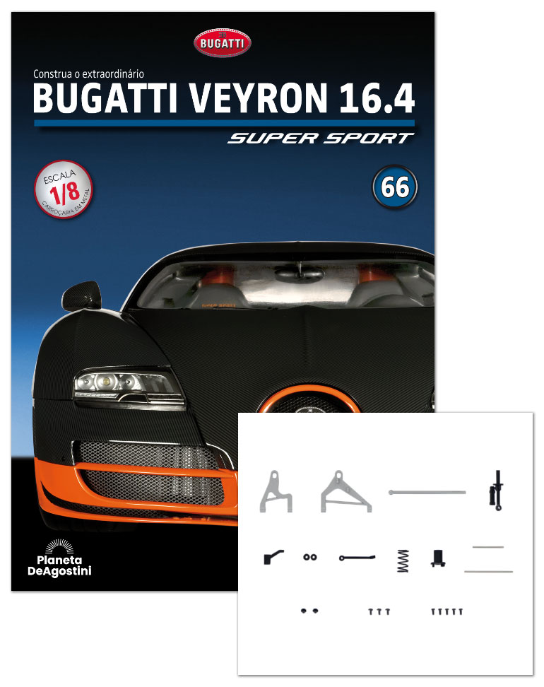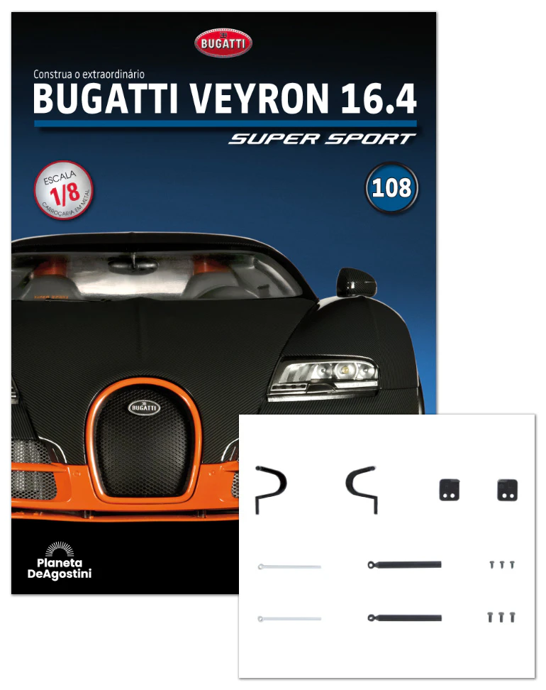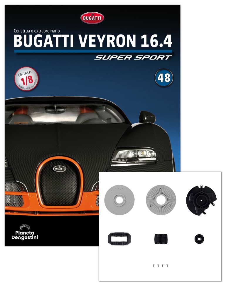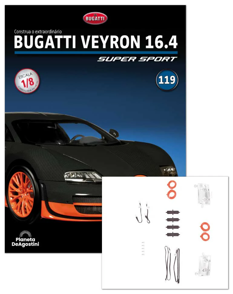 Em cada fascículo, encontrará instruções claras e detalhadas, acompanhadas por fotos e diagramas muito completos, para montar o seu Bugatti Veyron 16.4 Super Sport passo a passo.