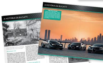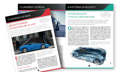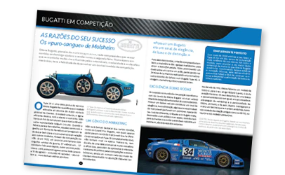 Em cada número, descobrirá a história da Bugatti e a sua extraordinária passagem pelo mundo real da competição.