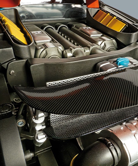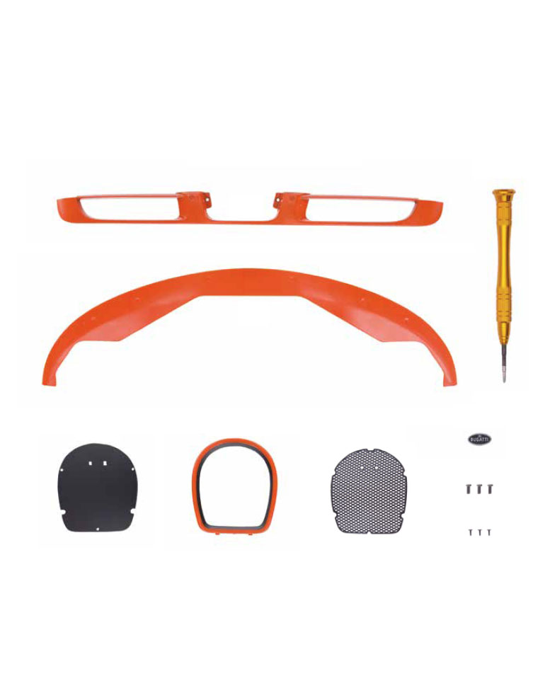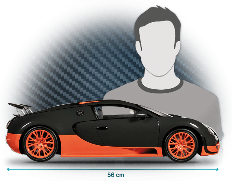 Deixe-se seduzir pela sua carroçaria, de um estilo sem igual, pela sofisticada mecânica do motor e por cada um dos elementos que compõem esta reprodução à escala 1/8 do Bugatti mais selvagem.