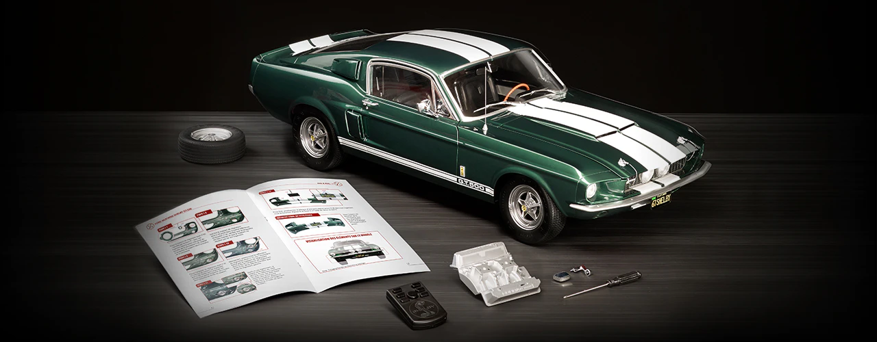 Alguma vez sonhou ter um Ford Mustang Shelby GT500®? Agora pode consegui-lo. Mais de cinquenta anos após a sua criação, pode apreciar esta reprodução à escala 1:6 de um automóvel lendário de uma era icónica da engenharia automóvel. Esta é uma oportunidade única para construir passo a passo o seu próprio Ford Mustang Shelby GT500® de 1967, um carro adorado pelos entusiastas da velocidade e da engenharia.