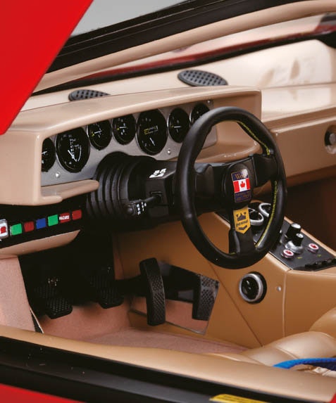 In 1975, Walter Wolf, a wealthy Canadian businessman and owner of the Wolf Formula 1 Racing team throughout the 1970s, purchased an LP400, and asked Gianpaolo Dallara, Lamborghini’s chief engineer, to create a special high-power version of the Countach. The LP 500S was the result, and the car became a key stepping stone to Lamborghini’s future production models. Wolf’s distinctive vehicle featured several exclusive modifications, including a red colour scheme with black flared arches, which is faithfully reproduced in your model.